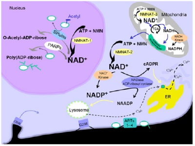 7. Berger F, Lau C, Dahlmann M, Ziegler M.Subcellular compartmentation and differential catalytic properties of the three human nicotinamide mononucleotide adenylyltransferase isoforms. J Biol Chem. 2005;280(43):36334-41.