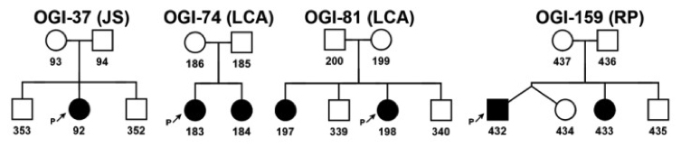 We analyze the sequence data to search for rare variants and CNVs in the known IRD genes or new IRD gene candidates. TO discover new disease genes, we conduct two strategies: 1) family genetics, and 2) cohort-based study. In family genetics, we analyze all available family members and look for rare, likely pathogenic genetic variants that segregate with the phenotype. Examples of such families are presented in Figure 1. In the cohort based studies, we select patients of similar phenotype, for which we do not have available family members, and analyze them together as a group. Here, we search for common rare, likely pathogenic variants between the affected individuals.