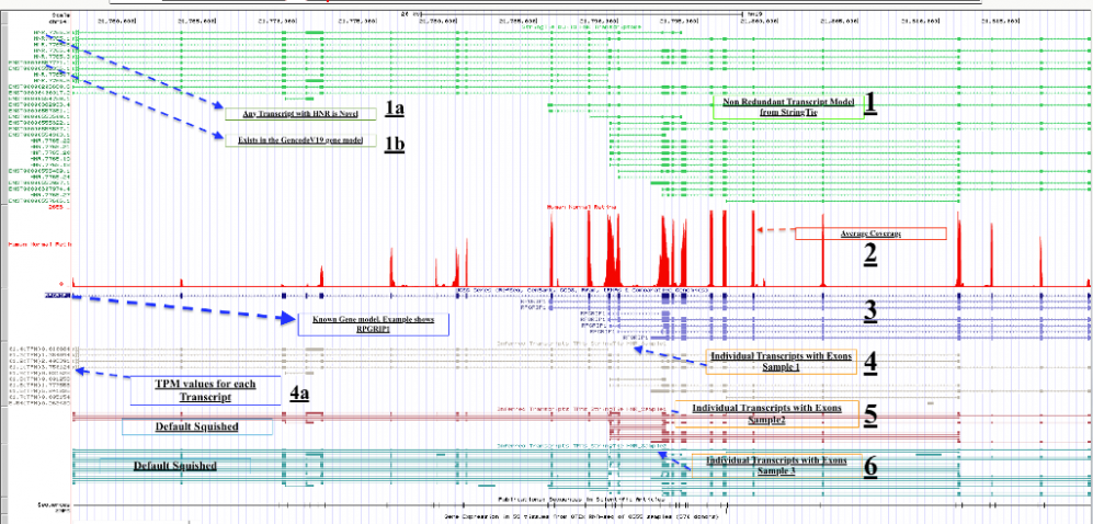 6) Transcripts from human normal retina Sample3. By default this is in squished format. Please scroll below and make it “full”. TPMs are shown in the name of the left.